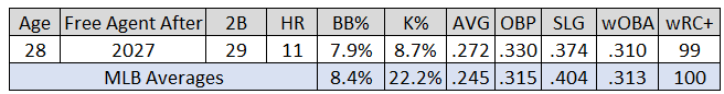 Perhaps this is a nothing-burger. Kwan’s OBP dropped .038 points from the season prior. Just 12 hitters experienced a steeper decline in 2025.