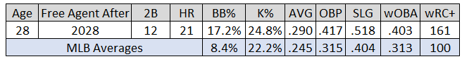 Selling points: If we use the FanGraphs version of Wins Above Replacement (fWAR) to define value, Duran (12.8 fWAR) is the 12th most valuable position player since 2024. Better than Corbin Carroll (10.9), Rodríguez (9.7), and Fernando Tatis Jr. (9.4).