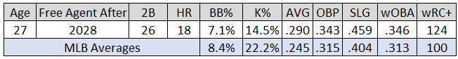 Selling points: Since debuting in 2022, Kwan boasts an outstanding 9.5-percent strikeout rate. Among 306 qualified hitters, only Luis Arráez (4.9-percent) was better.
