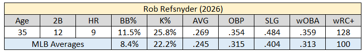 Am I suggesting Refsnyder is fragile? Not at all. But his recent injury history is worth mentioning considering his 35th birthday is Opening Day. As the Rolling Stones once said, “time waits for no one.”