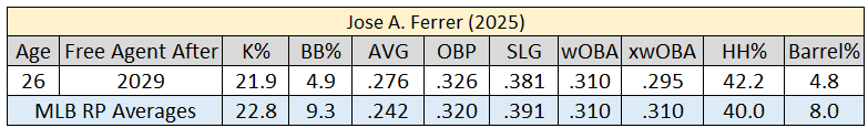Possible smoking gun: Ferrer’s opponent AVG and OBP are definitely unappealing. But there’s evidence worth considering when discussing a pitcher whose success is contingent on keeping the ball on the ground. His team’s infield defense was suspect in 2025.