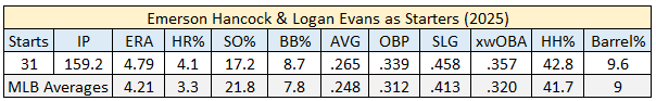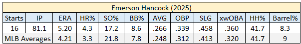 Hancock has experience being a rotation replacement at the beginning of a season. He’s done it the last two years when a starter went to the IL before Opening Day. The following illustrates his numbers from 2025, which were suboptimal.