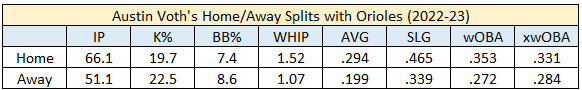 Since becoming an Oriole in 2022, Voth pitched well on the road. Not so much at Camden Yards. Perhaps this nugget factored into the decision-making of the Mariners when the team opted to sign the Kentwood High School product this winter.