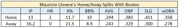 Llovera probably won’t miss Fenway Park either. Statcast Park Factors rates Boston’s home field as the second-most favorable venue for hitters over the last three seasons. The extreme home and away splits of the Venezuelan agree.