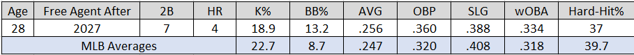 Potential concerns: McKinstry’s offensive history is brief. Therefore, it’s tough to know whether his current level of production is sustainable. The 28-year-old has already exceeded a personal high for plate appearances. Moreover, his current AVG, OBP, SLG, and OPS+ are significantly better than what he’s produced since debuting in 2020.